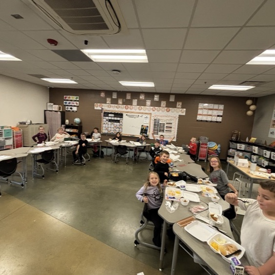 Mrs. Borah & Mrs Richardson's First Grade Class ate their Thanksgiving lunch together as a family! They all loved the meal cooked by our amazing cooks... a lot of them said they were thankful for the pumpkin pie! 🦃🥧