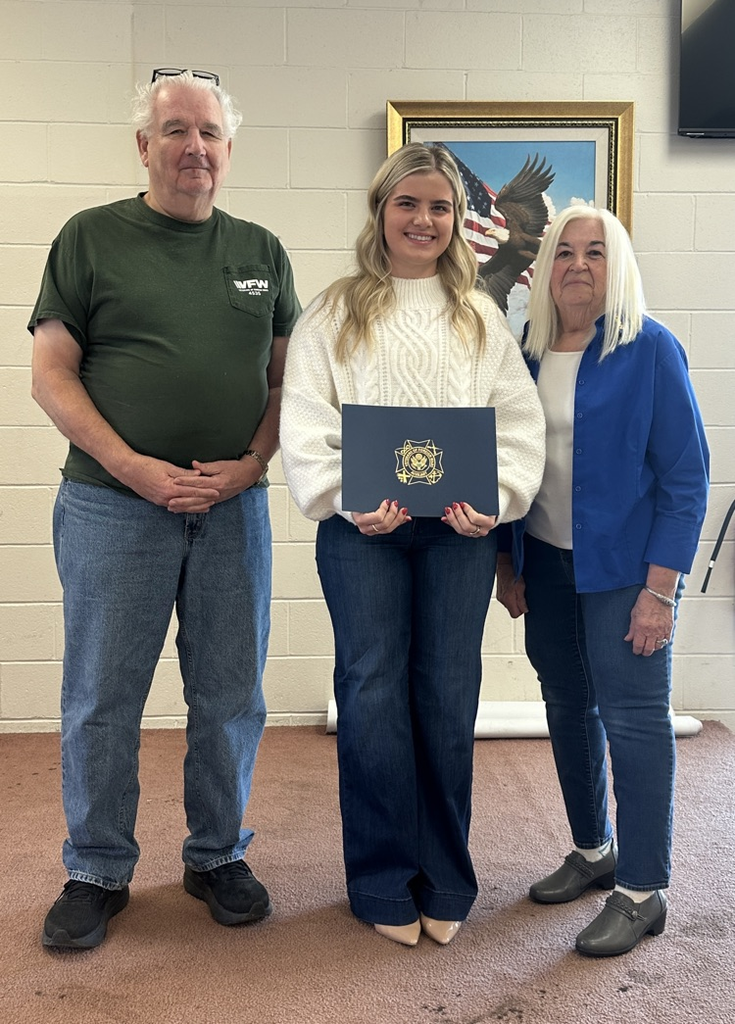 Congratulations to Alayna White for winning the VFW Voice of Democracy Scholarship through the Fairfield post.